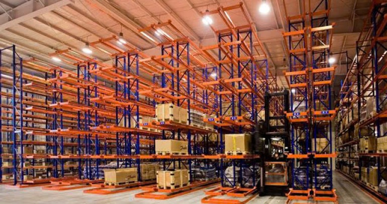 Kệ Drive-in: Giải pháp tối ưu diện tích cho kho hàng số lượng lớn, ít chủng loại, tăng mật độ lưu trữ lên 80%.
